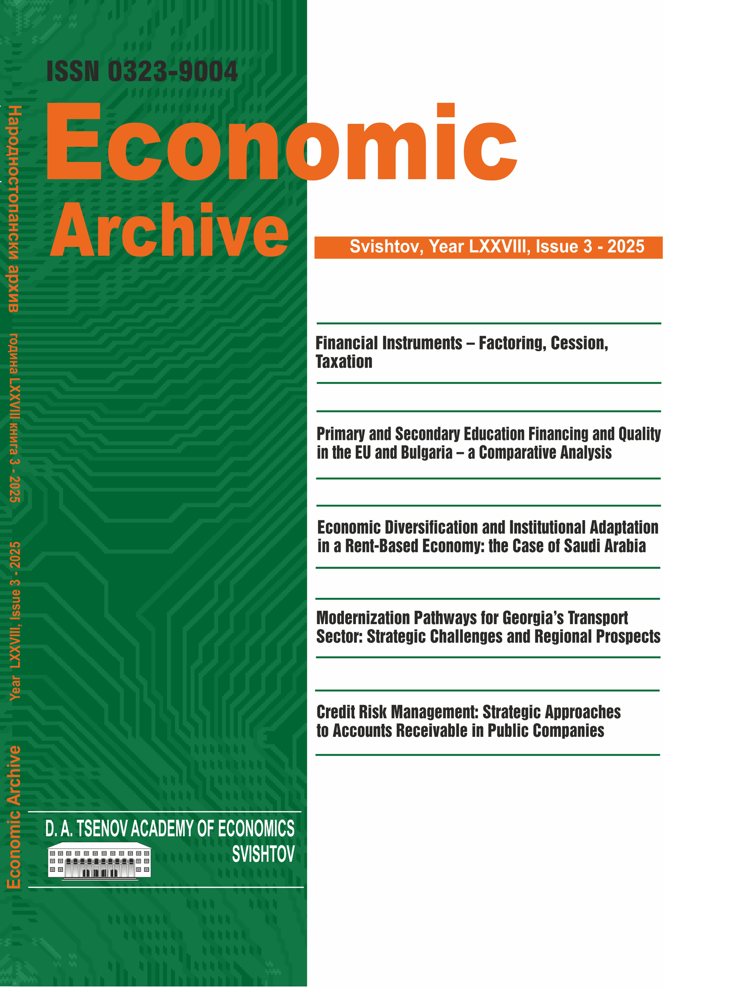 „Economic Archive“ journal is a scientific economic periodical of D. A.Tsenov Academy of Economics- Svishtov. In Book 1 of 1946, in the editorial of Prof. Todor Vladigerov, the foundations of the editorial policy of the journal were laid: "... to discuss and propose solutions to current problems of the economy ...".
